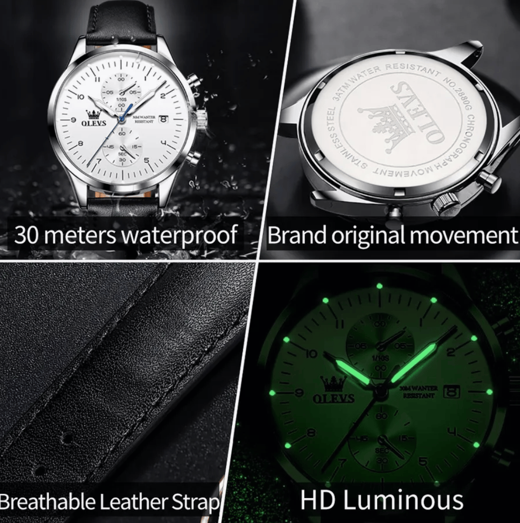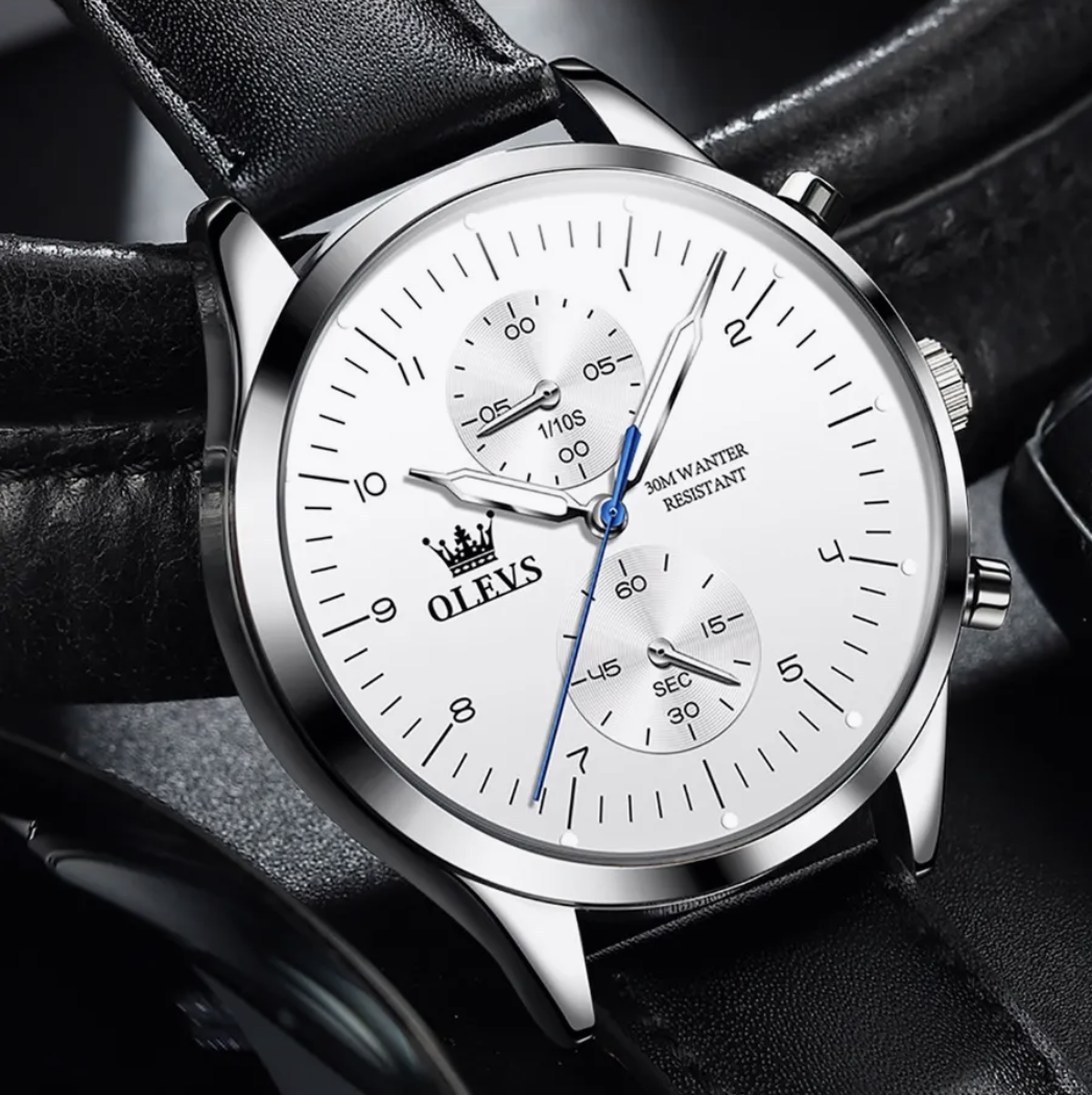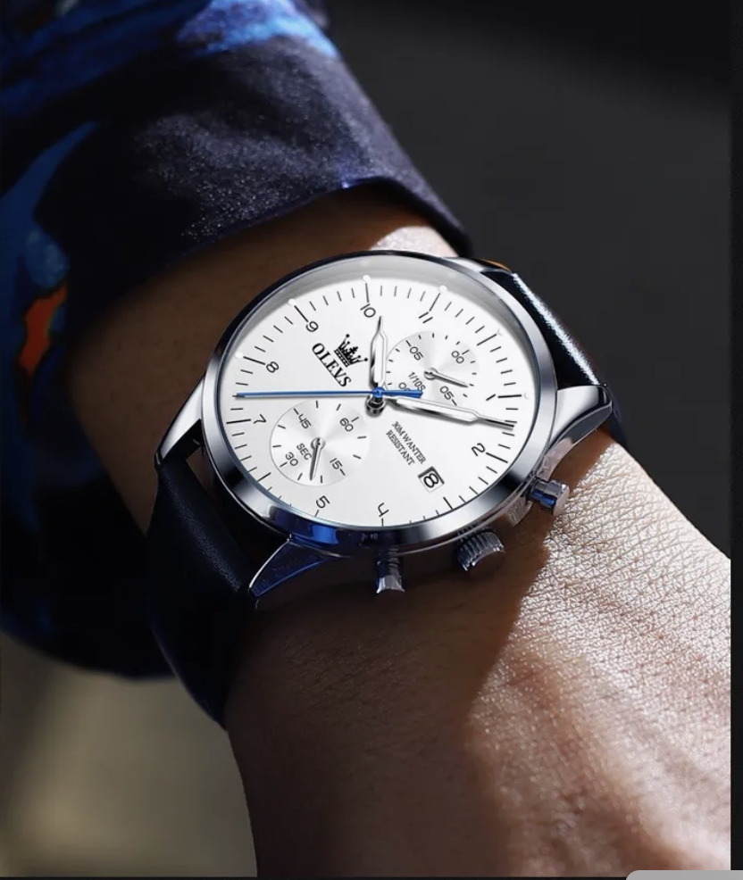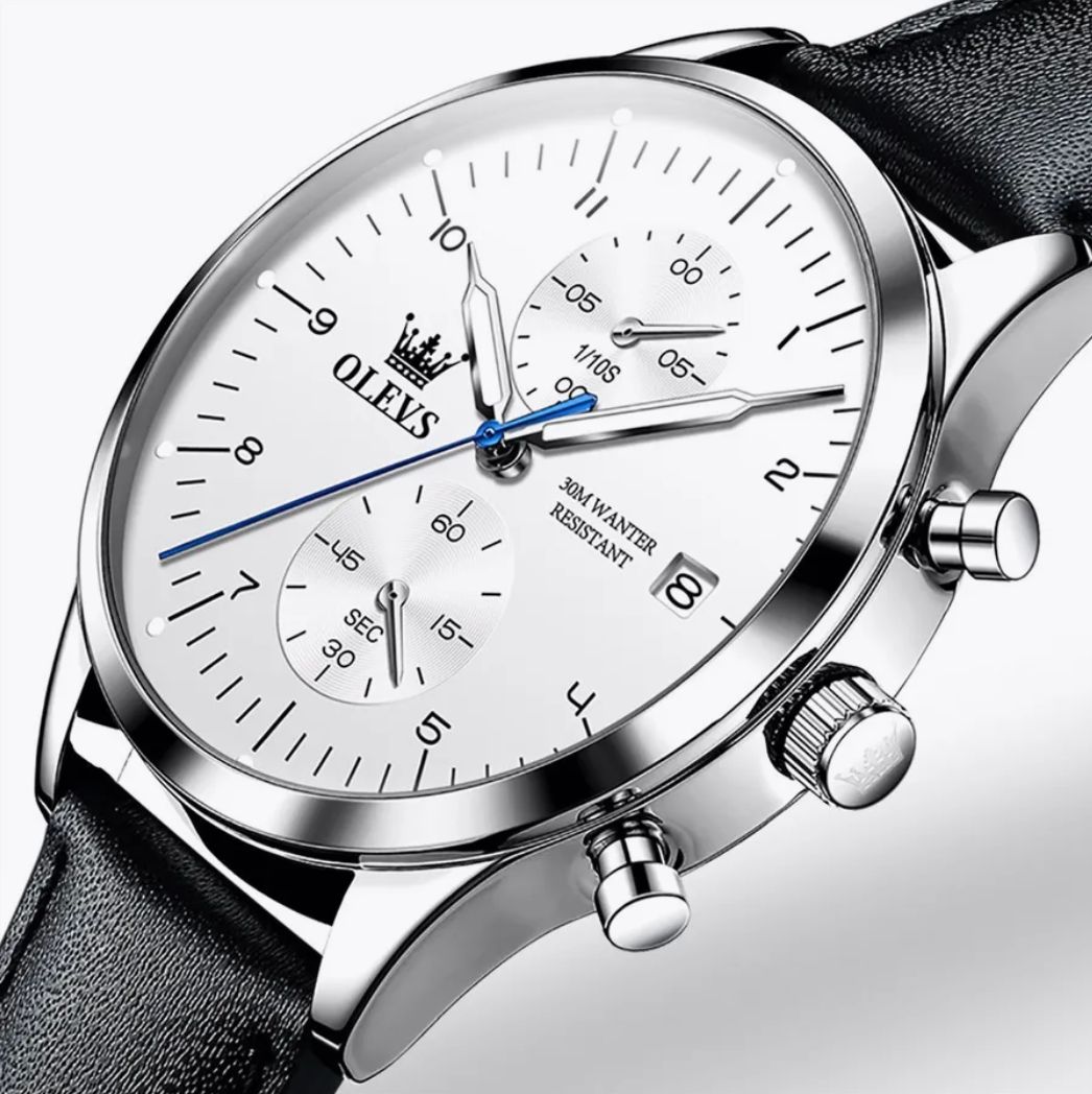 Cette montre OLEVS allie design classique et fonctionnalités modernes pour sublimer le poignet de tout homme soucieux de son style. Son cadran blanc épuré, rehaussé de détails subtils et de sous-cadrans fonctionnels, offre une lisibilité optimale. Avec ses aiguilles fines, son affichage de la date et son chronographe, elle incarne l'équilibre parfait entre esthétisme et utilité.