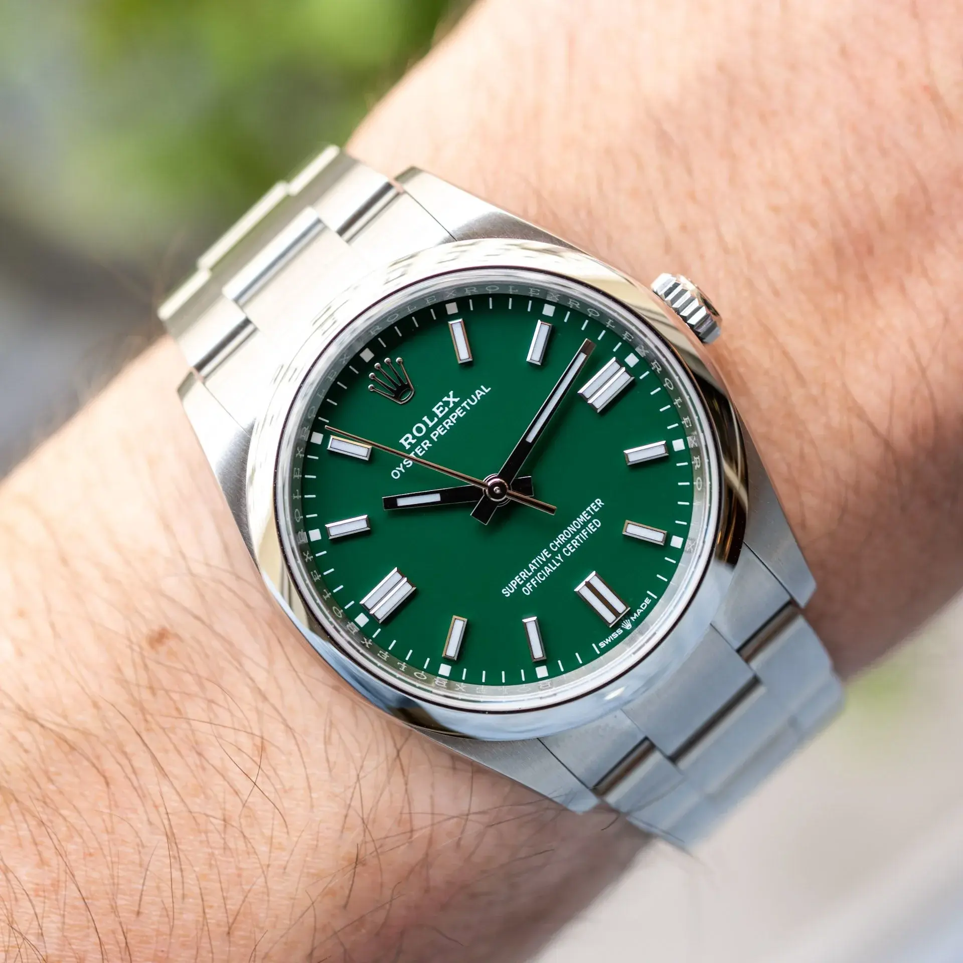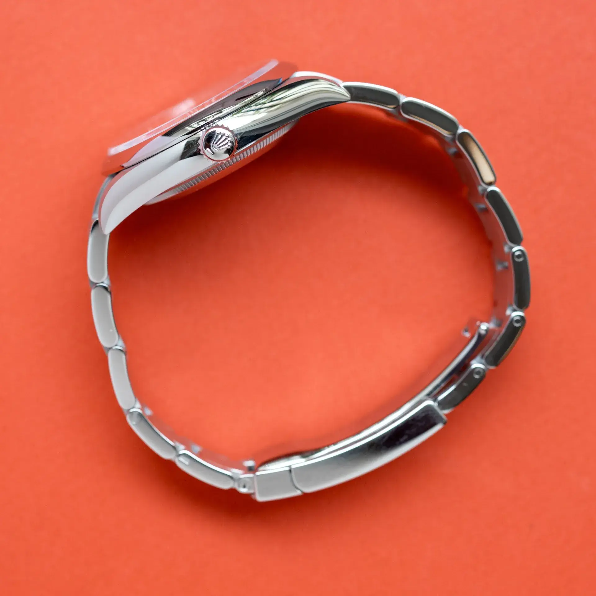 Son boîtier et son bracelet en acier inoxydable offrent robustesse et confort au quotidien. La finition soignée, avec une lunette lisse et un bracelet à maillons solides, apporte une touche moderne et sophistiquée. Grâce à sa conception Oyster Perpetual, elle garantit une excellente étanchéité et une résistance optimale aux conditions de tous les jours.