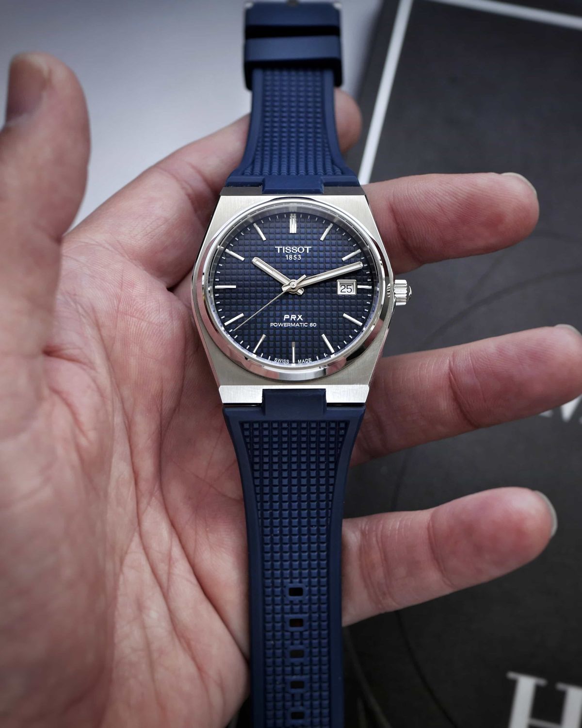 Le bracelet en silicone bleu texturé renforce son identité sportive tout en garantissant un confort optimal au poignet. Souple, résistant et parfaitement intégré au boîtier, il donne à la montre une allure dynamique et polyvalente. Une pièce idéale pour accompagner aussi bien une tenue habillée qu’un look plus décontracté, avec assurance et élégance.